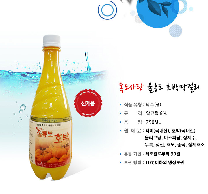 울릉도는 행정구역상 경상북도 소속인지라 강원도에서도 지장수 호박막걸리를 출시했어요.