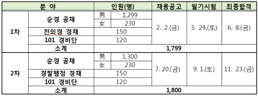 아마도 2019년 경찰공무원 순경 채용 인원도 올해와 별반 다르지 않을 것으로 예상됩니다.