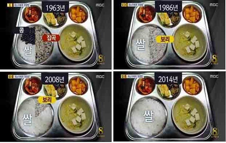 헌데 2012년 보리수매제가 폐지되면서 시중의 보리 가격이 정부미보다 고가가 되어 보리수급이 원활하지 않자 규정을 고쳐서 100% 쌀밥을 제공하도록 되었다고.
