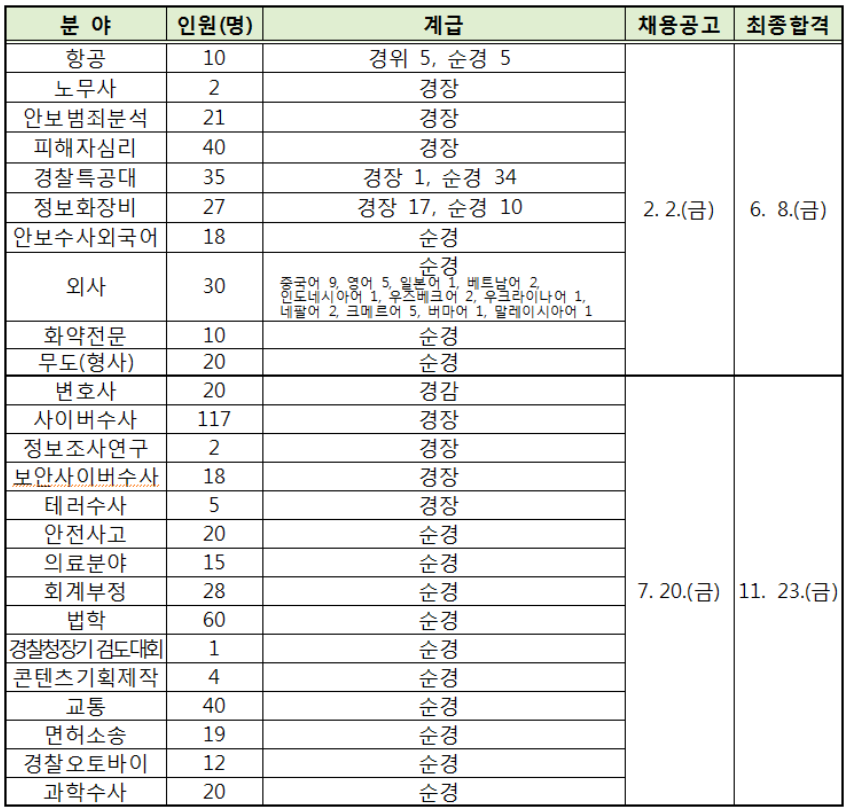 2016년에 경찰 채용인원이 3566명이었으니 대략 매년 이 정도 수준의 채용이 있는 것이죠.