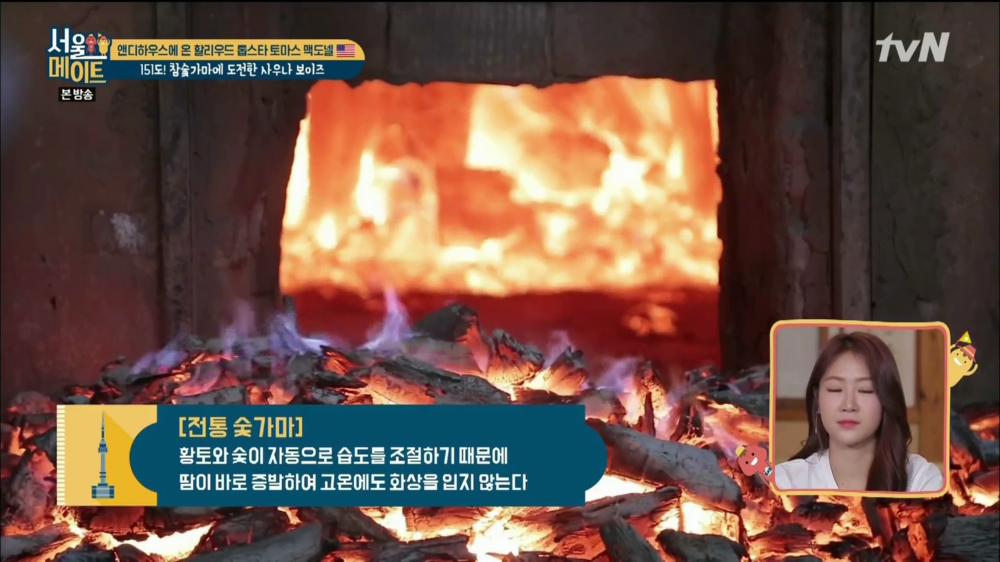 전통 숯가마는 황토와 숯이 자동으로 습도를 조절하기 때문에 땀이 바로 증발하며 고온에도 화상을 입지 않는다고 합니다.