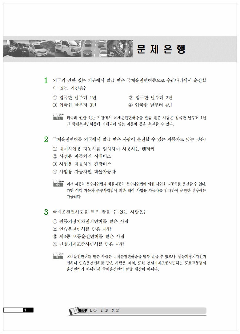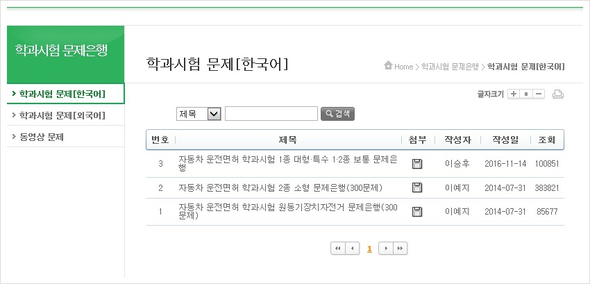 도로교통공단 홈페이지에서 운전면허 - 학과시험문제은행 - 학과시험 문제 카테고리로 이동하면 기출문제를 다운로드할 수 있습니다. 한국어와 외국어 선택이 가능하므로 필요한 서류를 선택해 다운로드할 수 있습니다. 기출문제를 몇 번 풀어보면 문제 유형을 익히게 되어 공부가 한결 수월해질 것입니다.