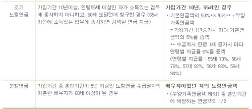 또한, 소득 있는 업무에 종사하지 않아야 하며, 조기수령은 60세 이전에는 청구하셔야 합니다.