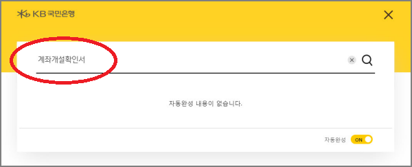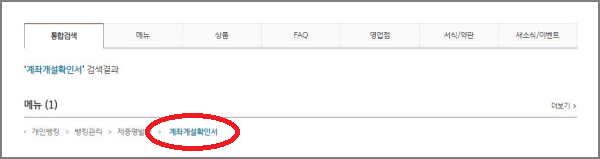 검색창에 <계좌 개설 확인서>를 입력하여 검색하세요.