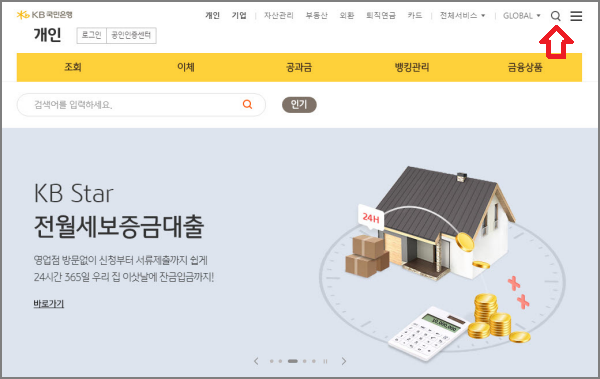 홈페이지 우측 상단에 돋보기를 클릭하면 아래처럼 검색창이 뜹니다.