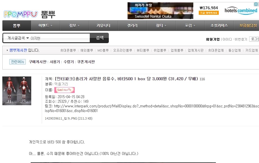 뽐뿌의 구매 게시판에 "총리가 사랑한 음료수 비타 500"이라는 글이 올라왔네요.
