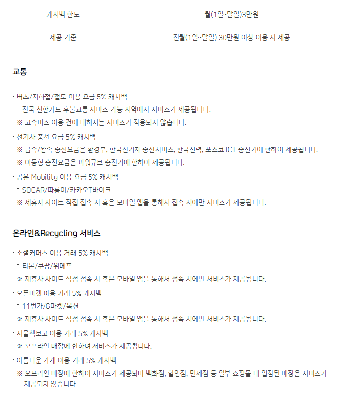 신한 딥 에코 카드 혜택 요약정리.