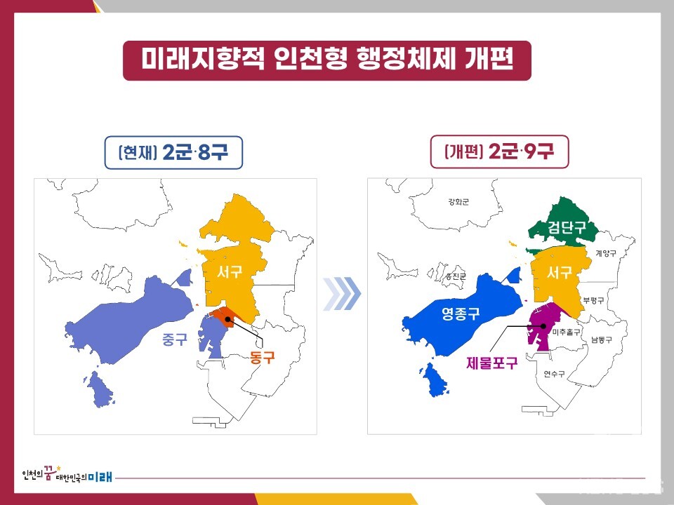 전유도 인천시 행정체제개편추진단장은 "행정체제 개편은 인천의 미래를 위한 중요한 선택"이라며 "성공적인 개편을 위해 해당 자치구와 긴밀히 협력하겠다"고 말했습니다. 이번 개편을 통해 인천시는 더욱 효율적인 행정 운영과 주민 편의를 도모할 수 있을 것으로 기대됩니다.