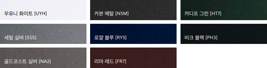 추천색상은 골드코스트 실버, 카디프 그린, 로얄 블루 정도일 것 같다.