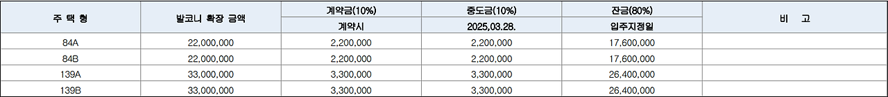 발코니 확장은 선택 사항이며, 확장 비용은 기본 공급가에 포함되지 않습니다. 발코니 확장을 원할 경우 추가 비용이 발생하며, 이는 계약 시 별도로 납부해야 합니다.