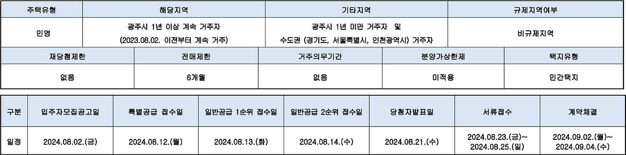 - 청약 자격: 수도권 거주자 및 광주시 거주자